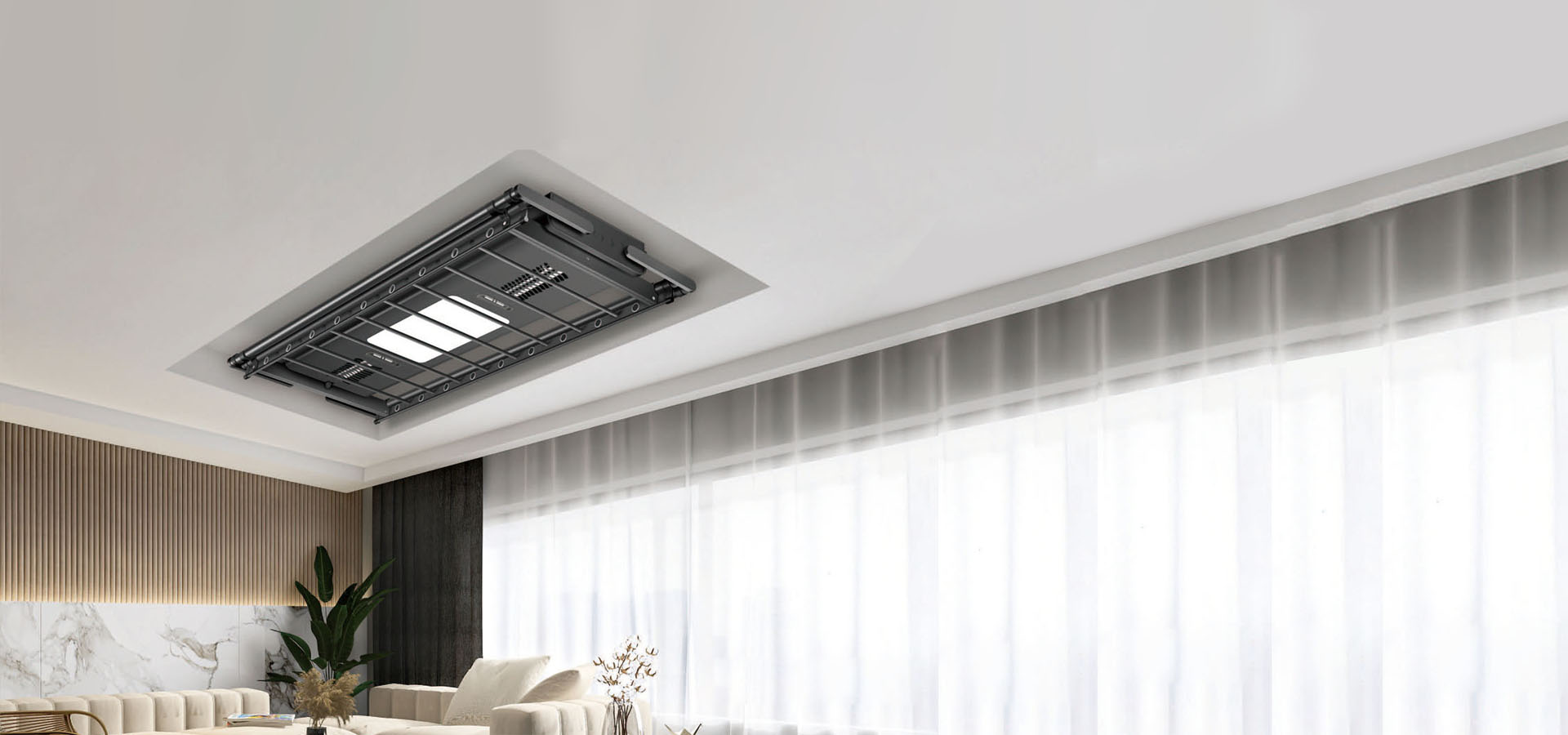 擁有35KG的承重能力,可以晾曬十幾件 厚衣服,滿(mǎn)足全家晾衣需求S1半隱形超薄一體機(jī)智能晾衣架